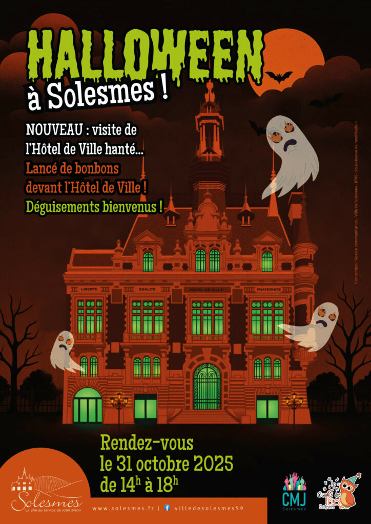 Le 31 octobre 2025, la ville de Solesmes (59) vous donne rendez-vous pour une journée d’Halloween inoubliable ! Cette année, une grande nouveauté attend petits et grands : la visite de l’Hôtel de Ville hanté. Frissons garantis, sucreries à volonté et déguisements ensorcelants seront au programme d’un après-midi placé sous le signe de la fête et du mystère.