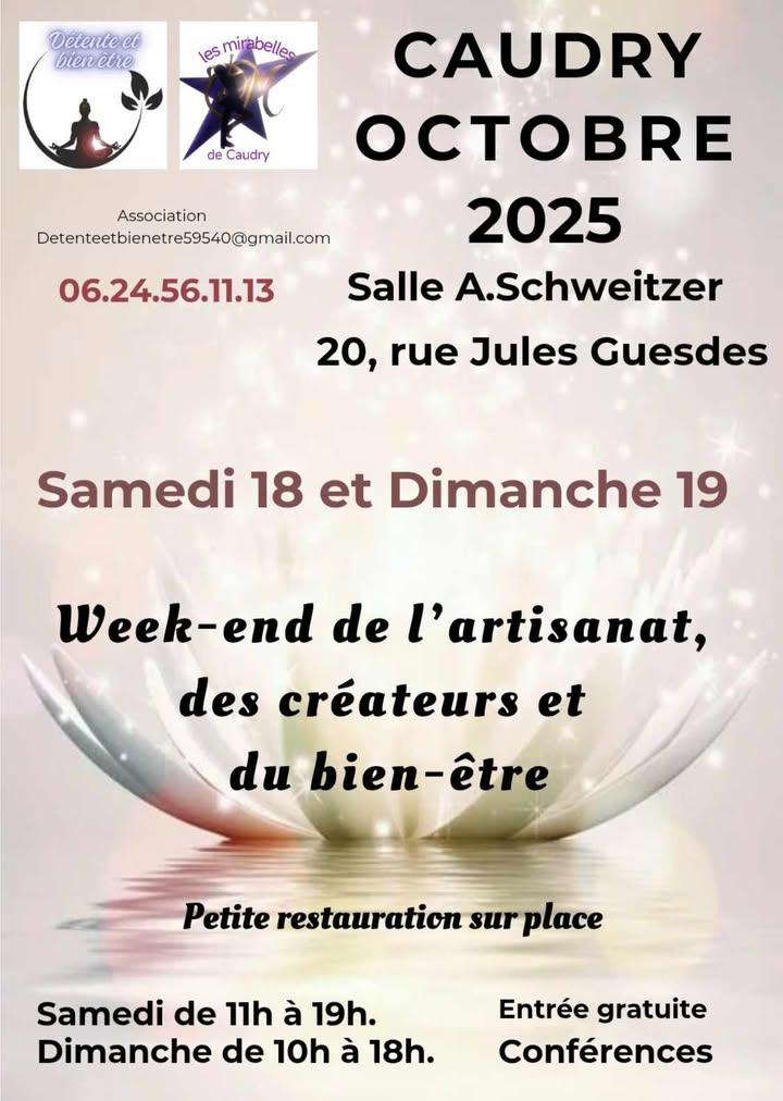 📅 Rendez-vous à Caudry, salle A. Schweitzer, les samedi 18 et dimanche 19 octobre 2025 pour un week-end unique dédié à l’artisanat, aux créateurs et au bien-être !